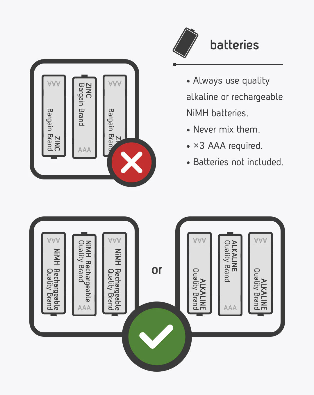 - Requires x3 AAA batteries (LR03 1.5V max).