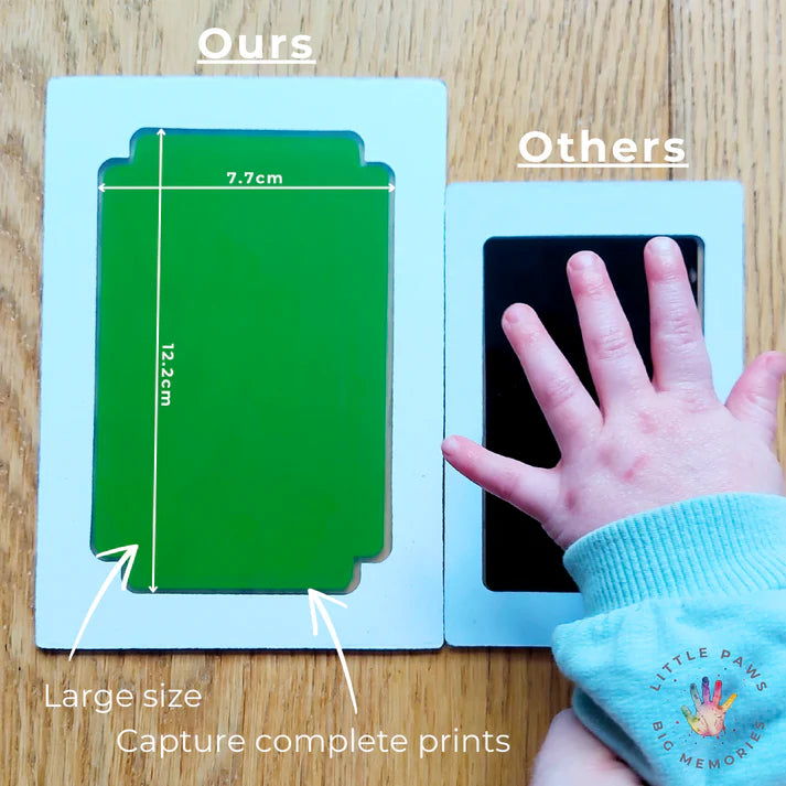 Extra large size - the ink window itself measures 12cm x 7.5cm (not including the frame), much larger than others on the market. This ensures you capture every precious detail. The ink pads will get you approximately 2-4 prints (depending on size of baby/type of print etc), and they come in a plastic case to prevent drying out.
